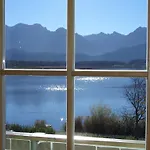 Acomodação está situada numa viagem de 10 minutos a partir de Antigo Mosteiro de St. Mang. Está localizado em Füssen, a 5 km do centro da cidade. Os hóspedes podem desfrutar da cozinha européia e alemã no Hotel am Hopfensee localizado a 50 metros de distância. Este Gastehaus Guggomos "Hopfen Am See" fornece um acesso fácil a St. Peter und Paul.